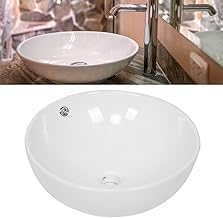 Lavabo, salle de bain ronde en céramique Lavabo à poser Lavabo à poser Lavabo à main Lavabo à poser Avec trous de drainage pour salles de bains familiales Toilettes Cuisines Hôtels 44 x 16,5 cm