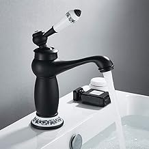 Mitigeur lavabo vintage salle de bain, robinet lavabo rétro eau chaud et froid, mélangeur lavabo (Noir)