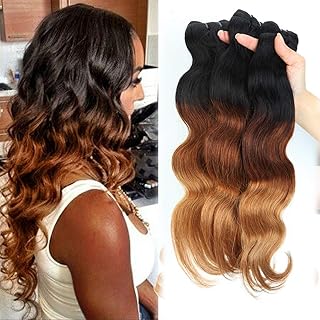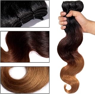Tissage Bresilien Meches Bresiliennes Cheveux Naturel Dégradé - Extensions Cheveux - Grade 7A Brazilian Virgin Remy Hair Ombre (#1B Noir Naturel+#33 Auburn+ #27 Blond foncé) - 8'