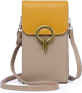 Femmes Portefeuille Sac Bandoulière pour Téléphone en Cuir Porte Monnaie Téléphone Portable Mini Pochette Porte Carte Épaule Portefeuille Sac Petit Sacs à Main pour Voyage Léger (Jaune)