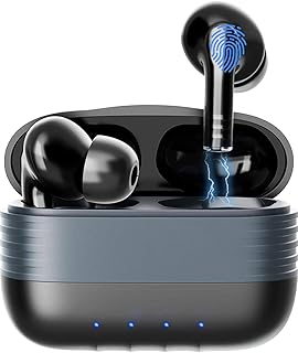Amoner Écouteurs Bluetooth 5.0, Ecouteurs sans Fil avec Micro, Casque Anti Bruit, Riche en Basses, Contrôle Tactile, Appariement Automatique, pour iphone et Android iOS