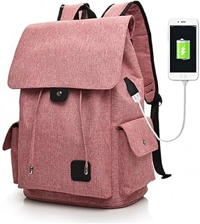 Segater Femme Homme décontracté Sac à Dos en Toile Port de Chargement USB de Voyage Travail College Sac d'école Ordinateur Portable 39,6 cm Rose