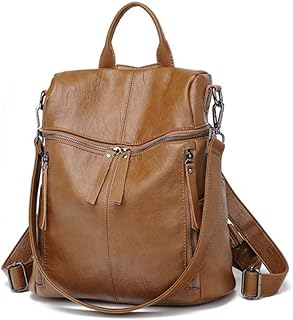 Sac à Dos Femme en Cuir Souple - Daypack Scolaire Décontracté 2 en 1 comme Sac à Dos et Sac à Bandoulière, Backpack Multipocket Léger de Grande Capacité, Sac pour Travail, École et Voyage