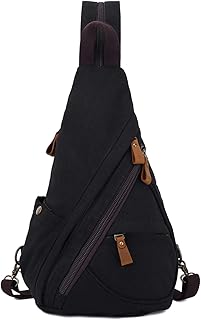 Sac de Poitrine Sac à la Taille Sac de Jambe Sac Bandoulière Homme Femme Sac de Voyage Sling Bag Toile Sac d'Epaule Sacoche pour Randonnée Université École Cyclisme Camping Daypack Noir