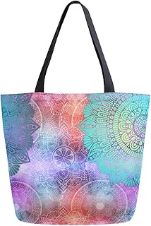 CPYang Sac fourre-tout en toile avec motif de fleur de mandala tribal pour femme, grand sac à main réutilisable, sac d'épicerie, sac à bandoulière décontracté pour voyage, école, extérieur