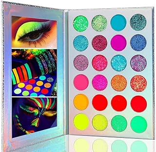 earlyad Maquillage de Palette de Fard à paupières Paillettes néon 24 Couleurs, Palette de Fard à paupières UV Glow in The Dark Facile à appliquer