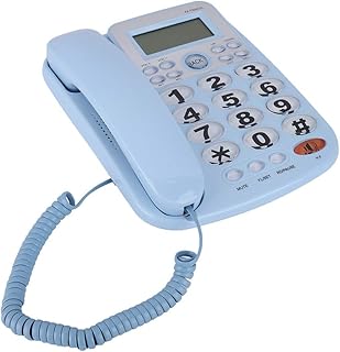 ASHATA Téléphone Filaire avec Haut-Parleur, Téléphone Fixe de Bureau Écran LCD Systèmes DTMF/FSK,Identification de l'appelant Grands Boutons pour la Maison/Bureau(Bleu)