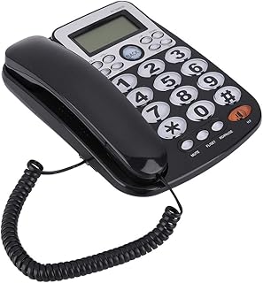 ASHATA Téléphone Filaire avec Haut-Parleur, Téléphone Fixe de Bureau Écran LCD Systèmes DTMF/FSK,Identification de l'appelant Grands Boutons pour la Maison/Bureau(Noir)
