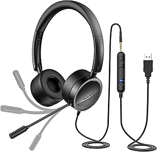Casque PC avec Microphone USB, réduction du Bruit et contrôle du Volume, Casque Audio stéréo Casque de Conversation avec Ordinateur pour Les Entreprises Skype, webinaire, Bureau, Jeux et Musique